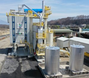 私たちは、土木・舗装工事と建築工事だけの会社ではありません。官公庁や民間会社からの注文を受けて、道路の舗装材料であるアスファルト合材を佐久穂町内の自社工場で製造しています。舗装材は、新しい材料を使うだけでなく、掘削した道路から発生する廃材をリサイクルしたもの(再生材)を基にして製造することも多くなっています。リサイクル率を高めることによって、限られた地球の資源をできるだけ有効活用したいと、私たちは考えています。